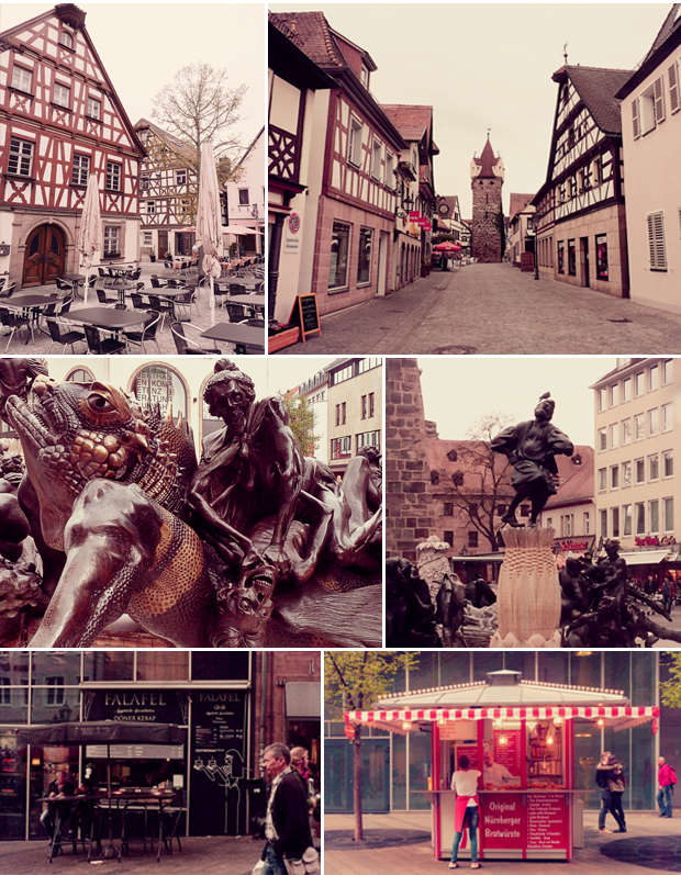 EN> Next stop: Nuremberg. All sorts of different things to do and for every taste and age. Lots of creativity, this is one of the thing I like most about this place. Creativity seems to be overflowing so of course I was inclined to go to the most artsy looking establishments (bars more likely). This was possible thanks to Beer and Bühnchen (a music and beer festival where different bands play in various bars all over the city) not that I understood anything that was going on,  but it was good fun. After a few drinks everybody kinda just starts speaking the same language and you begin to feel like you have an idea of what is going on (even though it is just the alcohol possessing your brain). This city is really cool as it is a perfect combination of old and new, all the city centre seems to be inside a castle wall which reminded me a lot of game of thrones and made me love the city a million times more. You never seem to be a few underground stops away from popping out to a place that feels like a whole new city. While in Nuremberg we also stopped at Herzogenaurach, an extremely German looking place that looks out of some sort of fairytale story although unfortunately for us when we went there 80% of this place was shut.
