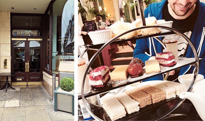 EN> Second day we went for afternoon tea as I thought it was just about time I experienced this after more than a year in the UK and it did not disappoint. Afternoon tea is a British thing where they bring you sandwiches and treats in a little tower with of course a cup of tea. I had read of it but never really was too fussed to try it until a few months ago. It was everything I hoped for and more tho I wish I had more sandwiches (but I eat more than the average person). I choose apple tea and my husband did not approve but he was not the one drinking it lets face it breakfast tea (his choice)  is not great tasting I don’t know why british people love it so much.